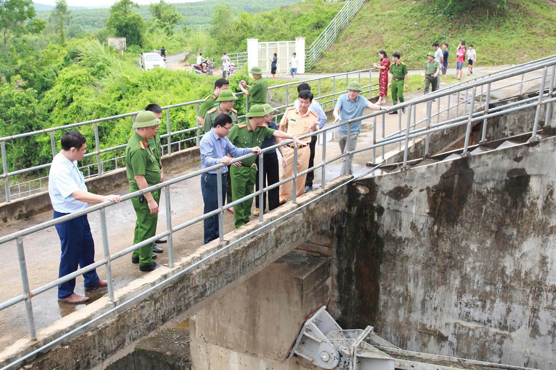 | Đoàn công tác đã kiểm tra công tác phòng, chống cơn bão số 5 tại tại hồ Vực Mấu, phường Hoàng Mai |