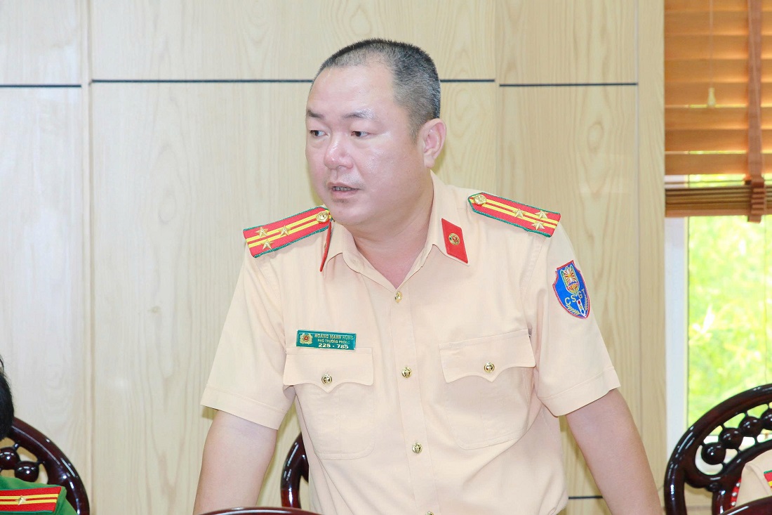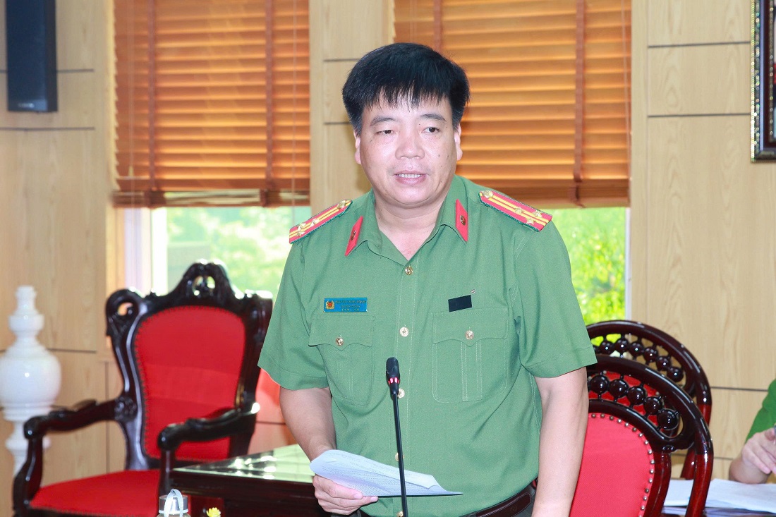 | Đồng chí Đại tá Trần Hồng Quang, Phó Bí thư Đảng ủy, Phó Giám đốc Công an tỉnh phát biểu kết luận buổi làm việc |