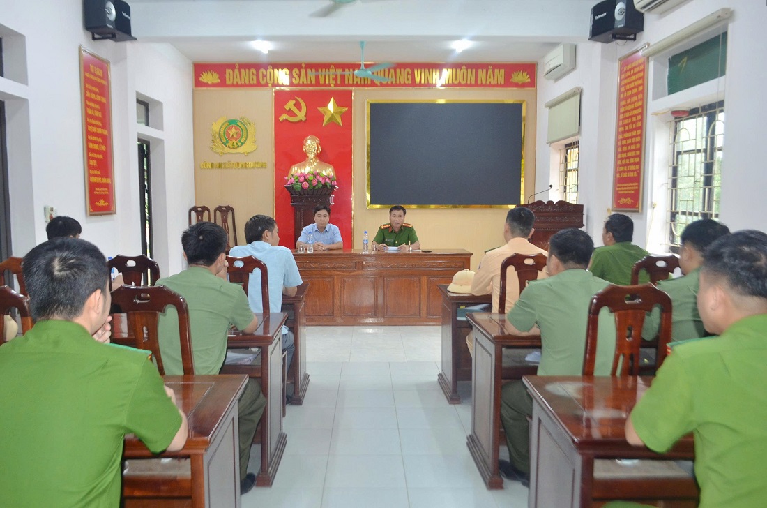 | Đồng chí Đại tá Nguyễn Duy Thanh, Phó Giám đốc Công an tỉnh làm việc với Công an xã Tương Dương |