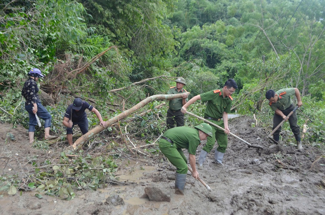 | Công an xã Tương Dương phối hợp với các lực lượng khẩn trương khắc phục sạt lở sau bão số 5 |