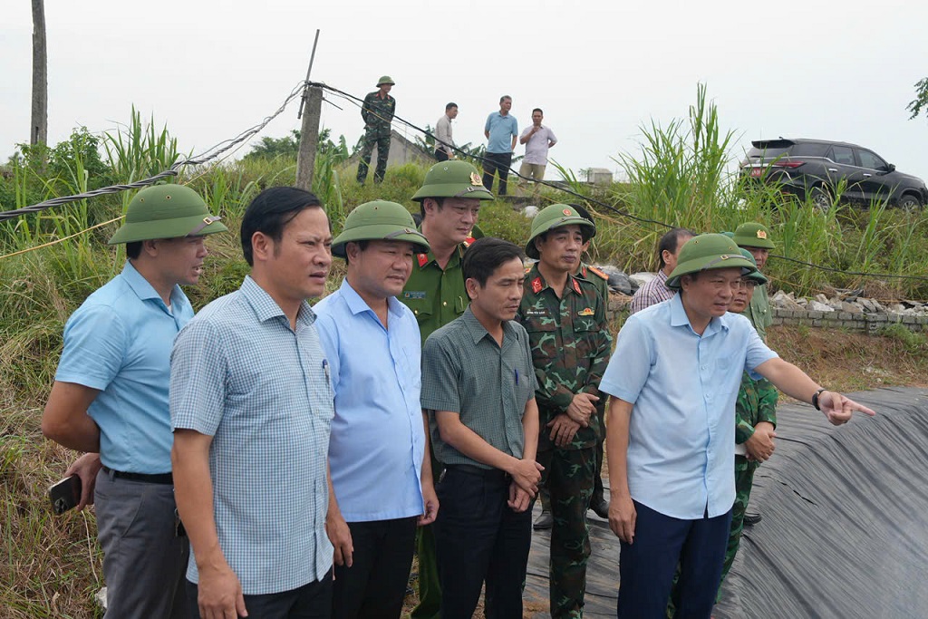 | Đồng chí Phó Giám đốc Công an tỉnh yêu cầu Công an xã Diễn Châu phải chủ động nắm bắt tình hình, có phương án di dời dân đến nơi tránh trú an toàn khi cần thiết. |