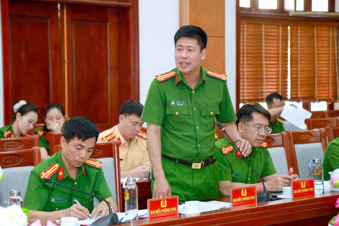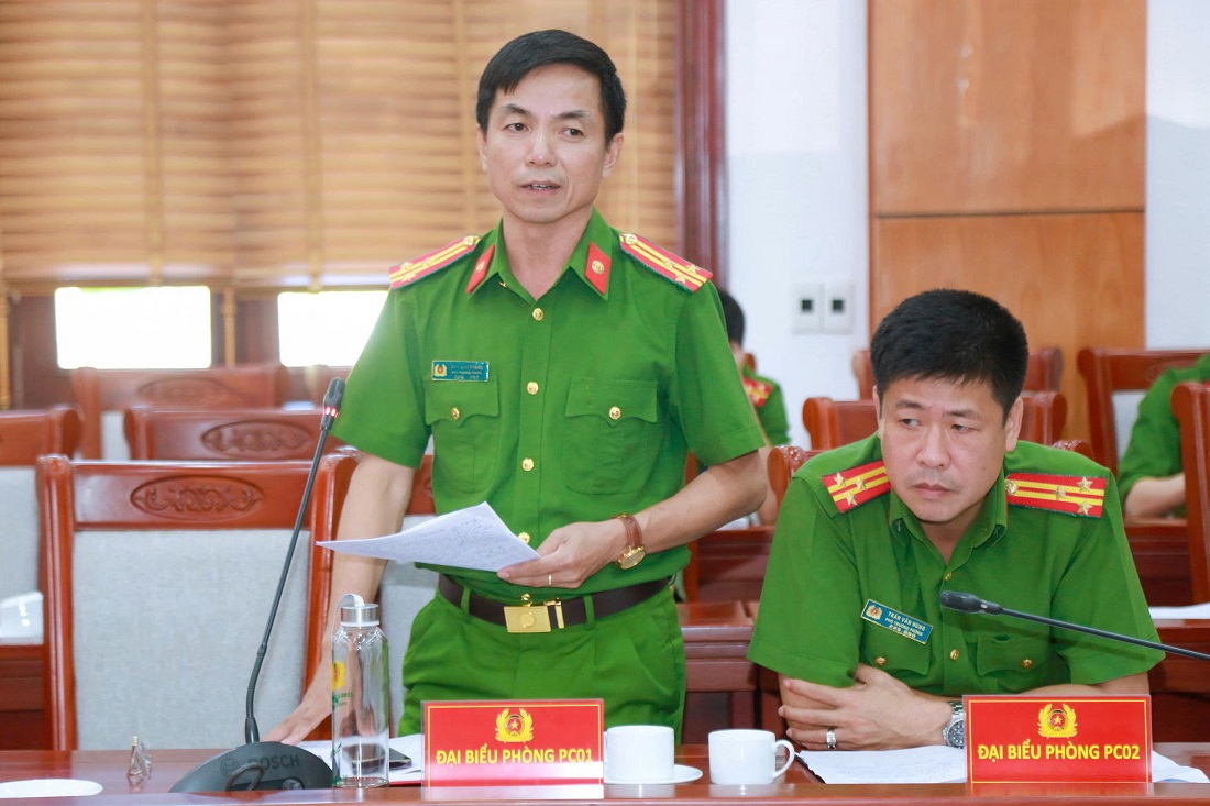 | Đại diện các Phòng chức năng Công an tỉnh phát biểu |