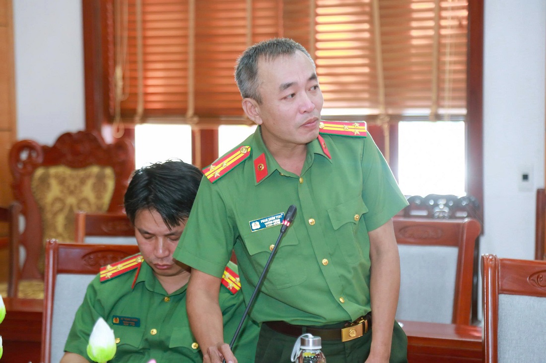 | Đồng chí Thượng tá Chu Đăng Phan, Trưởng phòng Thanh tra, Công an tỉnh phát biểu |