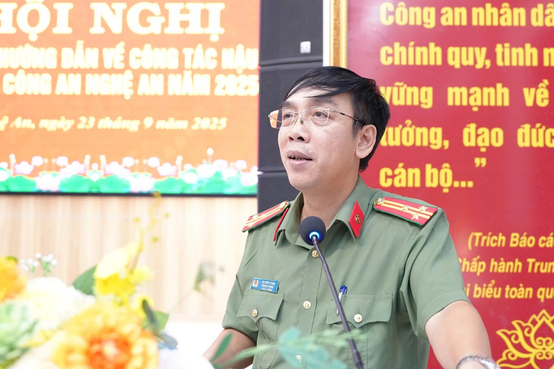 (Congan.nghean.gov.vn)-Sáng 23/9/2025 Công an tỉnh Nghệ An tổ chức Hội nghị đối thoại, hướng dẫn về công tác hậu cần trong Công an Nghệ An. Đồng chí Đại tá Trần Hồng Quang, Phó Bí thư Đảng uỷ, Phó Giám đốc Công tỉnh dự và chủ trì Hội nghị. Hội nghị được tổ chức trực tiếp và trực tuyến đến 130 Công an phường, xã trên địa bàn tỉnh.