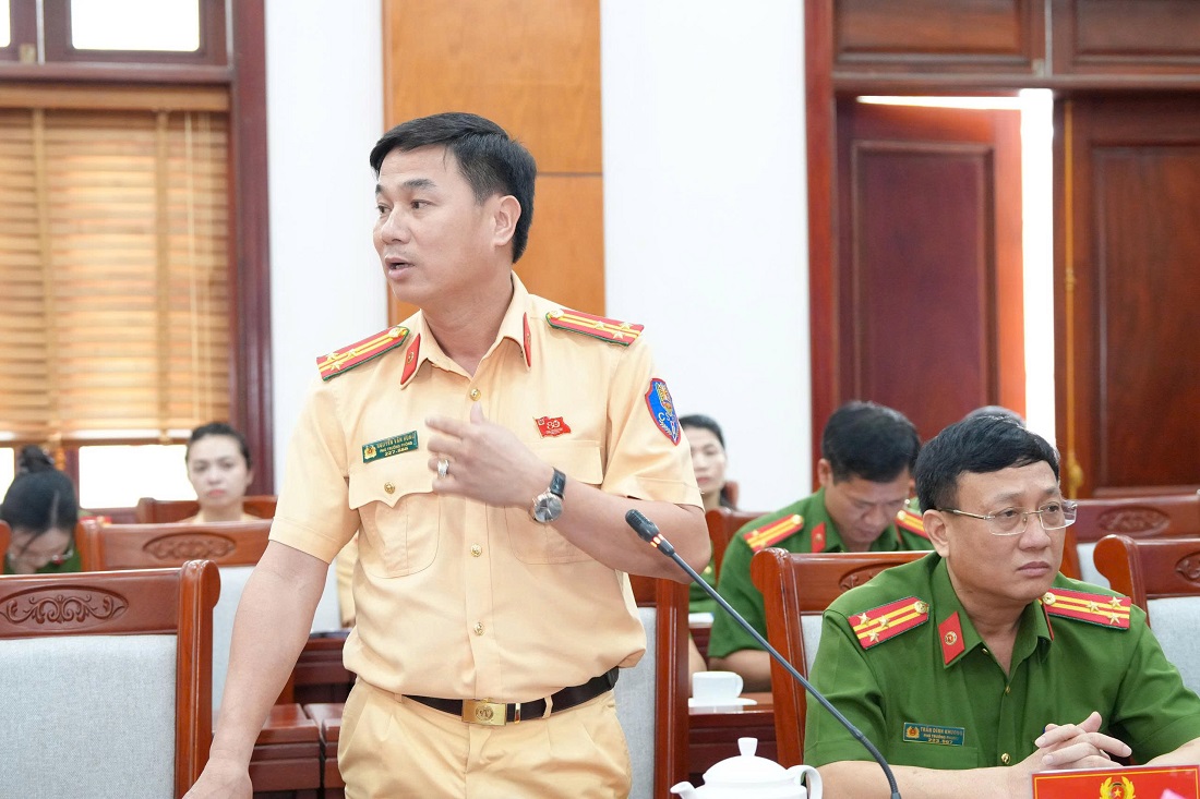 | Đồng chí Đại tá Trần Hồng Quang, Phó Giám đốc Công tỉnh phát biểu khai mạc tại Hội nghị |