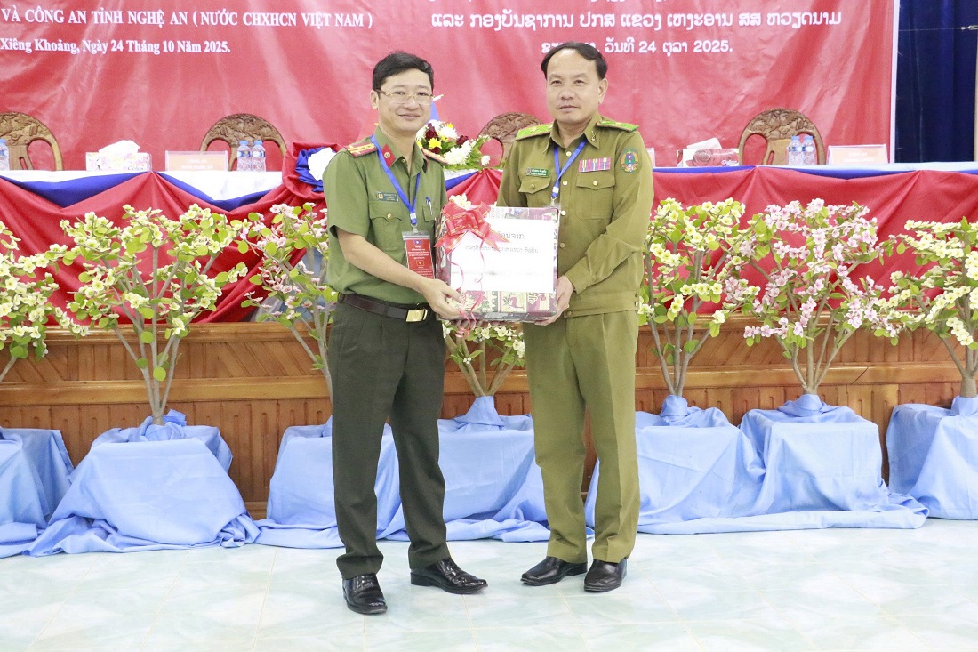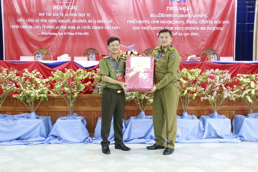 Ngày 24/10/2025, tại Công an tỉnh Xiêng Khoảng, nước CHDCND Lào, Công an 04 tỉnh gồm: Nghệ An (nước CHXHCN Việt Nam); Xiêng Khoảng - Hủa Phăn - Bo Ly Khăm Xay (nước CHDCND Lào) đã tổ chức Hội nghị giao ban đánh giá tình hình, kết quả hợp tác bảo đảm ANTT năm 2025. Các đồng chí: Thiếu tướng Si Văn Tha Phia Sạ Khả, Giám đốc Công an tỉnh Xiêng Khoảng; Thiếu tướng Kông Chăn Xay Păn Nha, Giám đốc Công an tỉnh Bo Ly Khăm Xay; Thiếu tướng Phết Sỏn In Sủ Phăn, Giám đốc Công an tỉnh Hủa Phăn; Đại tá Trần Ngọc Tuấn, Phó Giám đốc Công an tỉnh Nghệ An đồng chủ trì Hội nghị. Tham dự Hội nghị còn có lãnh đạo các phòng chức năng của Công an 04 tỉnh.