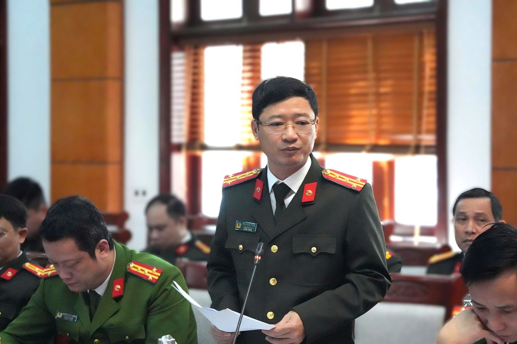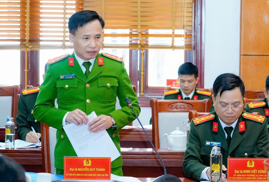 | Các đồng chí Phó Giám đốc Công an tỉnh và Lãnh đạo các sở, ngành phát biểu |