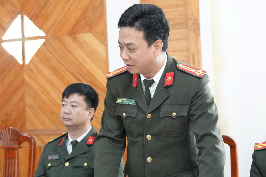 | Đồng chí Đại tá Trần Hồng Quang, Phó Giám đốc Công an tỉnh phát biểu kết luận kiểm tra |