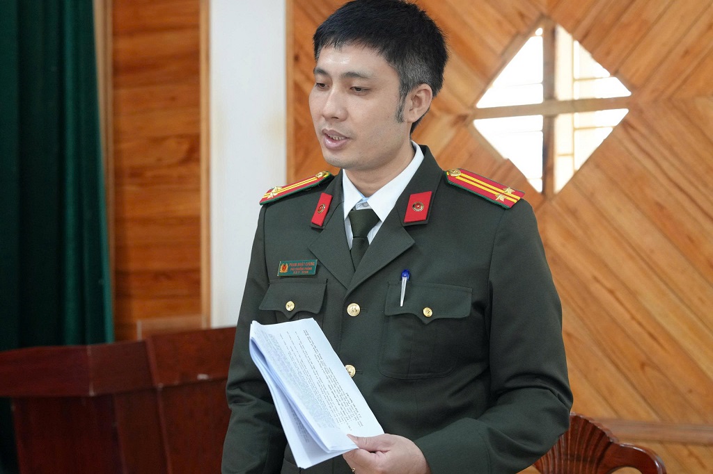 | Đại diện Chỉ huy Công an xã Hạnh Lâm phát biểu |