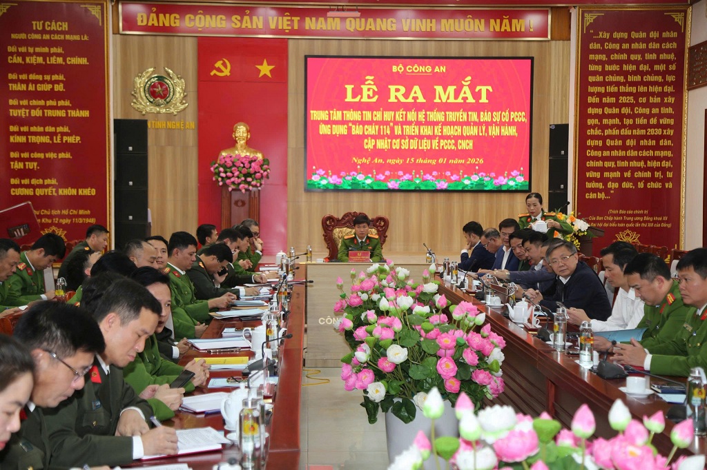 (Congannghean.vn)- Ngày 15/01/2026, tại Hà Nội, Bộ Công an tổ chức Lễ ra mắt Trung tâm thông tin chỉ huy kết nối hệ thống truyền tin, báo sự cố phòng cháy, chữa cháy, ứng dụng “Báo cháy 114” và triển khai Kế hoạch quản lý, vận hành, cập nhật Cơ sở dữ liệu về phòng cháy, chữa cháy và cứu nạn, cứu hộ (PCCC&CNCH). Thượng tướng Lê Văn Tuyến, Thứ trưởng Bộ Công an dự và phát biểu chỉ đạo tại Lễ ra mắt.