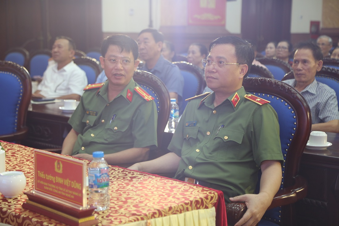 Tham dự buổi gặp mặt có các đồng chí: Thiếu tướng Đinh Việt Dũng, Ủy viên Ban Thường vụ Tỉnh ủy, Bí thư Đảng ủy, Giám đốc Công an tỉnh; Đại tá Nguyễn Đức Cường, Ủy viên Ban Thường vụ Đảng ủy, Phó Giám đốc Công an tỉnh; các đồng chí Lãnh đạo, cán bộ, chiến sĩ Phòng Cảnh sát Quản lý hành chính về trật tự xã hội qua các thời kỳ.