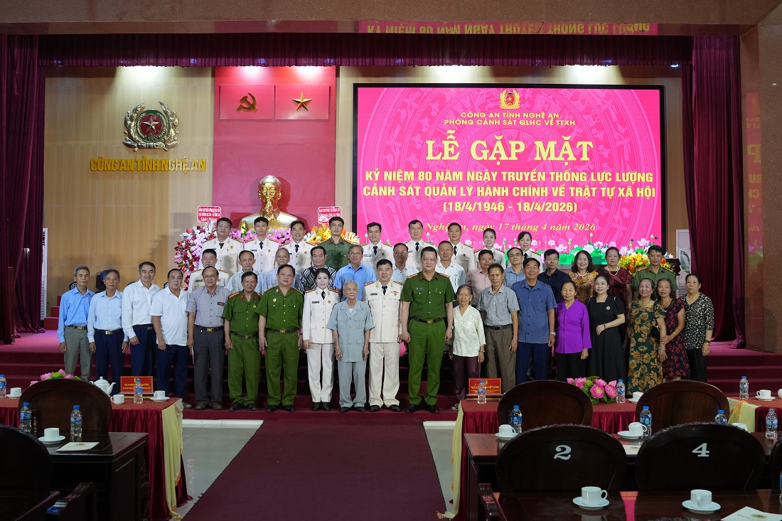 (Congan.nghean.gov.vn)-Chiều 17/4/2026, Công an tỉnh Nghệ An tổ chức Lễ gặp mặt kỷ niệm 80 năm Ngày truyền thống lực lượng Cảnh sát Quản lý hành chính về trật tự xã hội (18/4/1946 – 18/4/2026).