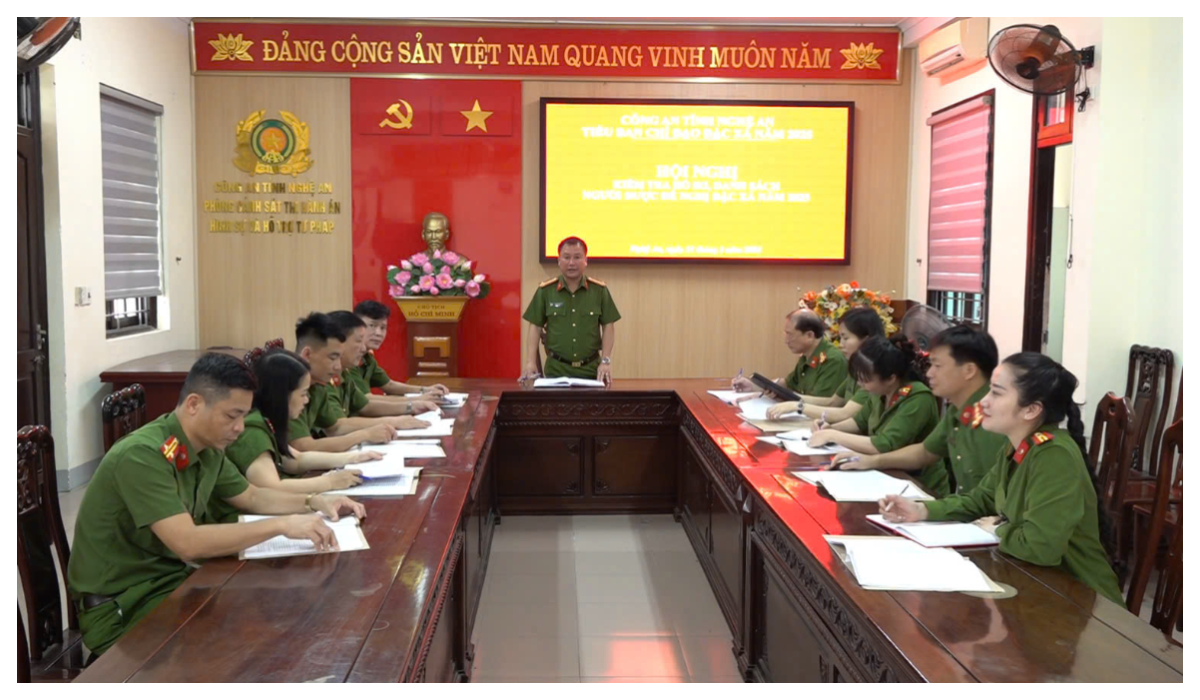20:58 | 20/08/2024Xét duyệt, kiểm tra hồ sơ, danh sách người đề nghị đặc xá năm 2024Chiều 20/8/2024, Tiểu Ban Chỉ đạo đặc xá Công an tỉnh Nghệ An tổ chức Hội nghị xét duyệt, kiểm tra hồ sơ, danh sách người đề nghị đặc xá năm 2024. Đồng chí Đại tá Nguyễn Đức Cường, Phó Giám đốc Công an tỉnh, Thủ trưởng Cơ quan Thi hành án hình sự, Trưởng Tiểu Ban Chỉ đạo đặc xá Công an tỉnh chủ trì Hội nghị.. -