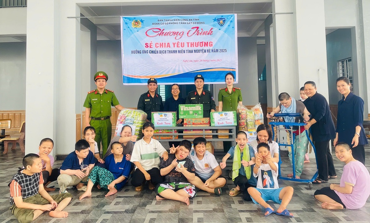 Ngay sau Lễ ra quân, Đoàn cơ sở Phòng Cảnh sát cơ động đã tổ chức chương trình “Sẻ chia yêu thương” thăm, tặng quà tại Trung tâm nuôi trẻ mồ côi, khuyết tật 19/3 (xã Nghi Diên, Nghi Lộc, Nghệ An) với số tiền trị giá hơn 5 triệu đồng.