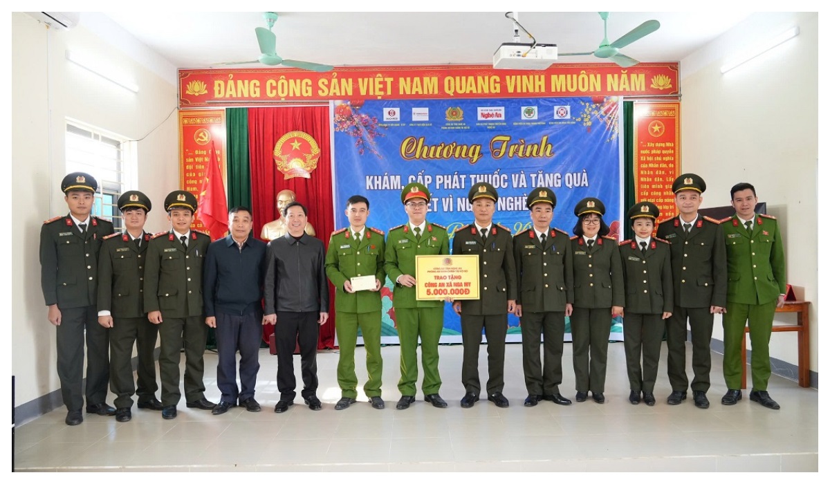 Trao quà Tết, khám và cấp phát thuốc miễn phí cho người dân Nga My(congan.nghean.gov.vn)-Sáng 9/1, Phòng An ninh chính trị nội bộ (PA03) Công an tỉnh Nghệ An phối hợp với Báo và phát thanh, truyền hình Nghệ An cùng các đơn vị đồng hành: Công ty CP Thủy điện Bản Vẽ; Bệnh viện Đa khoa TP. Vinh; Bệnh viện Đa khoa Cửa Đông và Tổng Công ty Đức Giang - CTCP (có trụ sở tại Hà Nội), đã tổ chức chương trình Khám, cấp phát thuốc miễn phí và tặng quà "Tết vì người nghèo" Xuân Bính Ngọ 2026 tại xã Nga My.