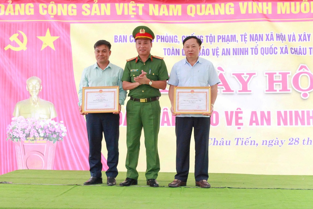 Cũng tại Ngày Hội, Công an tỉnh Nghệ An và UBND xã Châu Tiến đã khen thưởng các tập thể, cá nhân có thành tích xuất sắc trong phong trào toàn dân bảo vệ ANTQ năm 2024 và 6 tháng đầu năm 2025. Công an tỉnh Nghệ An cũng đã có những phần quà gửi tặng tới chính quyền xã Châu Tiến và các hộ gia đình khó khăn trên địa bàn.