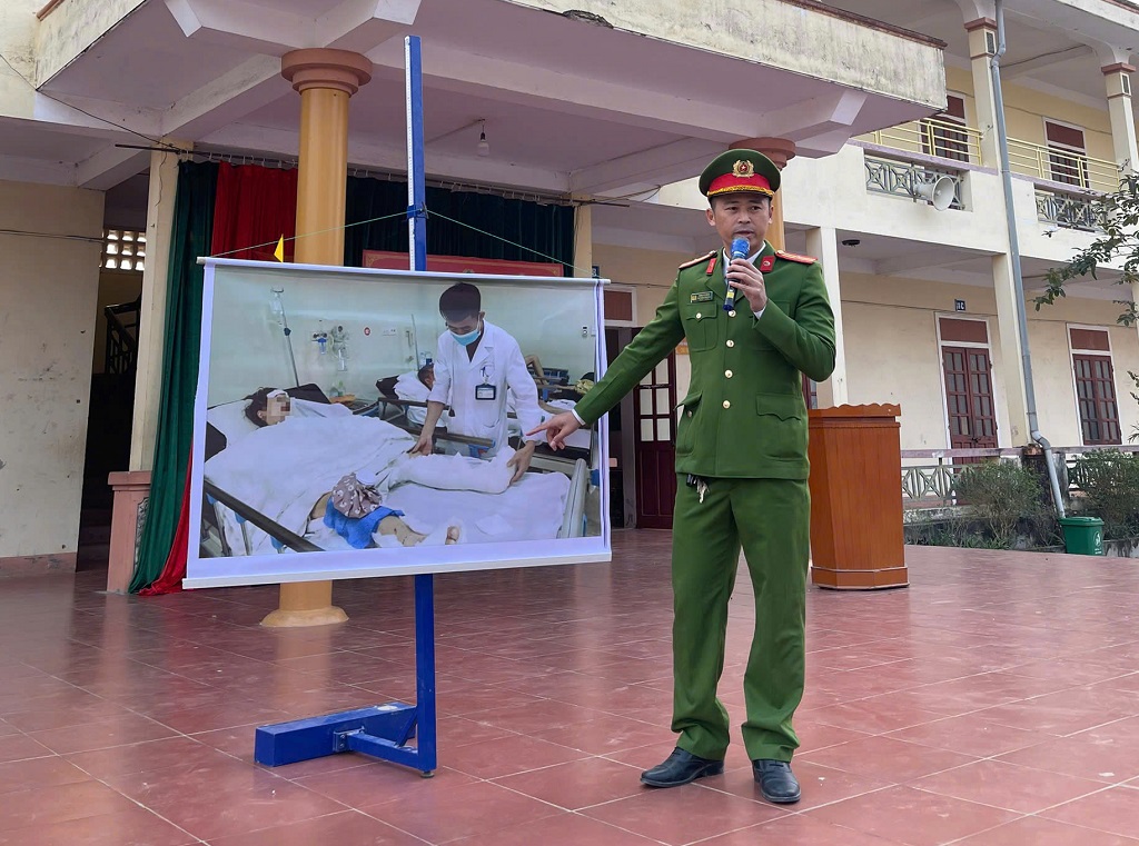 Nội dung tuyên truyền tập trung vào những vấn đề thiết thực, gắn liền với đời sống học đường như: An toàn giao thông; phòng cháy, chữa cháy; an ninh mạng; phòng, chống bạo lực học đường; tác hại của thuốc lá điện tử; phòng, chống ma túy; phòng, chống pháo nổ…Tại buổi tuyên truyền, Công an xã truyền đạt pháp luật bằng hình thức sinh động, dễ hiểu, gắn với những tình huống thực tế, qua đó thu hút sự quan tâm, hưởng ứng tích cực của đông đảo học sinh và giáo viên nhà trường.