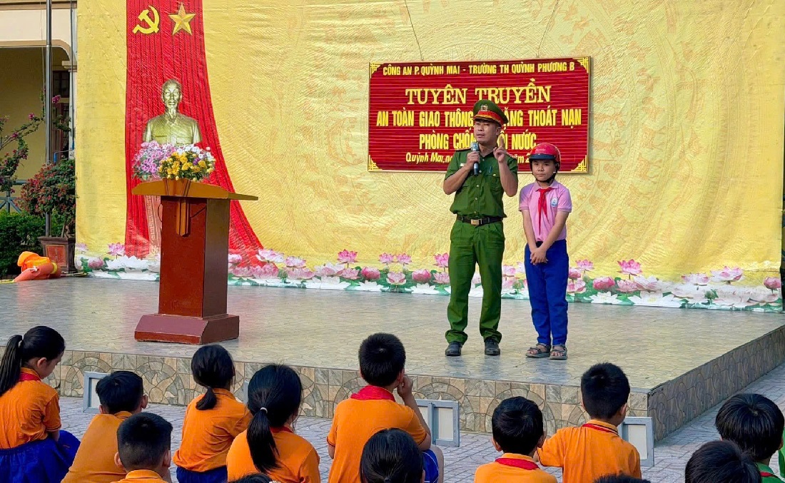(Congan.nghean.gov.vn)- Công an phường Quỳnh Mai vừa phối hợp Trường Tiểu học Quỳnh Phương B tổ chức tuyên truyền, phổ biến pháp luật về an toàn giao thông, kỹ năng thoát nạn và phòng, chống đuối nước cho học sinh.