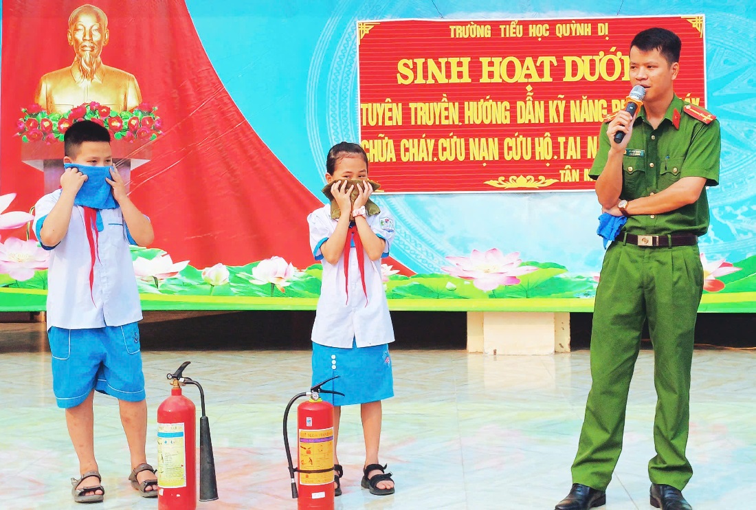 (Congan.nghean.gov.vn)- Công an phường Tân Mai vừa phối hợp Trường Tiểu học Quỳnh Dị tổ chức tuyên truyền, hướng dẫn kỹ năng phòng cháy chữa cháy, cứu nạn cứu hộ và phòng, chống đuối nước cho học sinh.