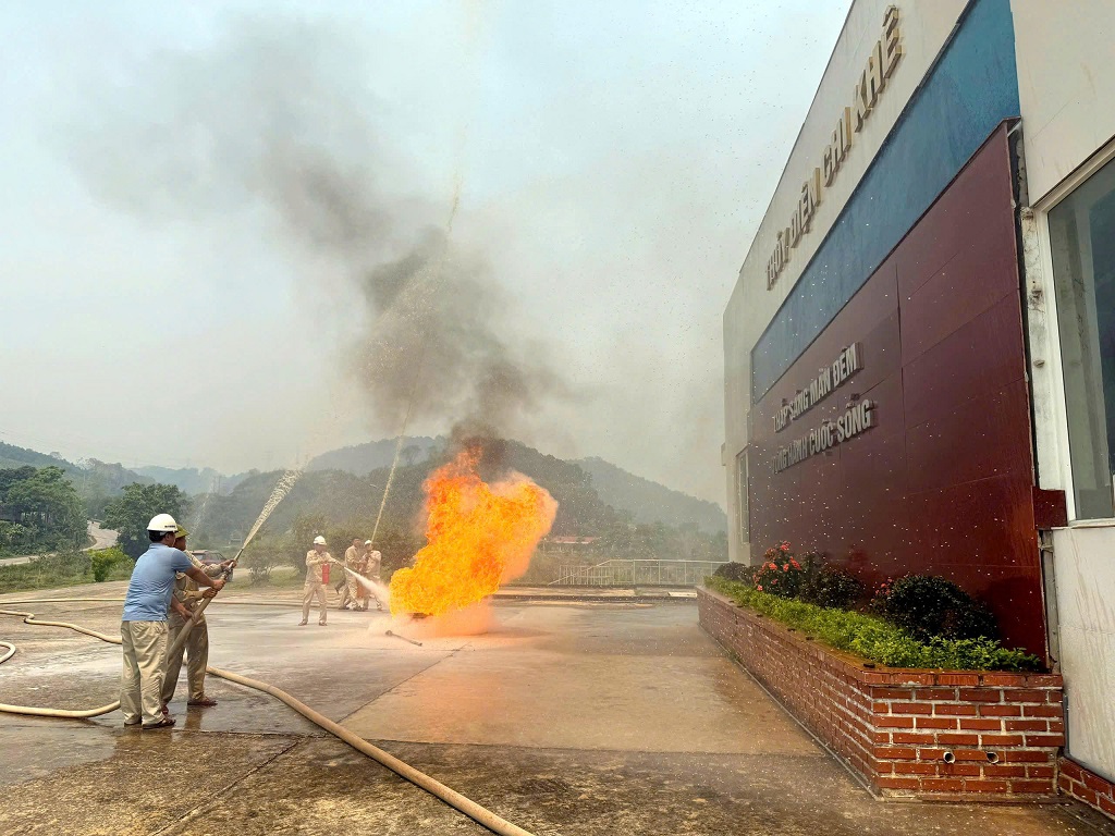 | Thực tập phương án chữa cháy, cứu nạn, cứu hộ tại Nhà máy Thủy điện Chi Khê |