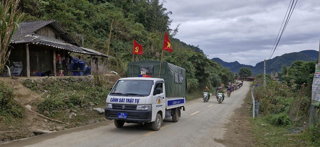 | Sau buổi lễ, Công an xã Mường Lống đã tổ chức diễu hành tuyên truyền qua các tuyến đường chính của xã tạo không khí thi đua sôi nổi trong đơn vị và ngoài xã hội |