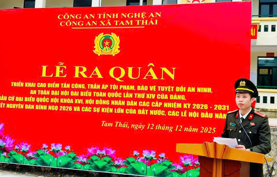 (Congan.nghean.gov.vn)-Thực hiện chỉ đạo của Bộ Công an, Công an tỉnh Nghệ An, ngày 12/12, Công an xã Tam Thái tổ chức lễ ra quân triển khai cao điểm tấn công, trấn áp tội phạm, bảo vệ tuyệt đối an ninh, an toàn sự kiện chính trị - xã hội quan trọng của đất nước.