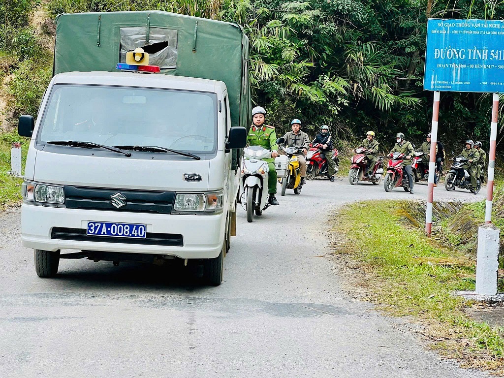 | Ngay sau lễ ra quân, Công an xã Tam Thái và lực lượng ANTT ở cơ sở tổ chức diễu hành |