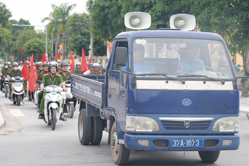 | Các lực lượng phường Vinh Phú diễu hành qua các tuyến đường |