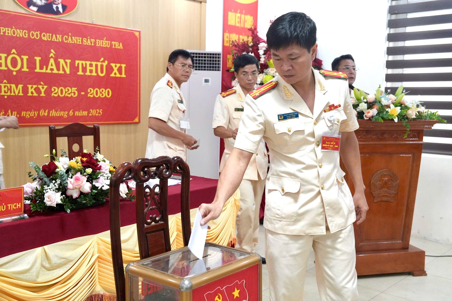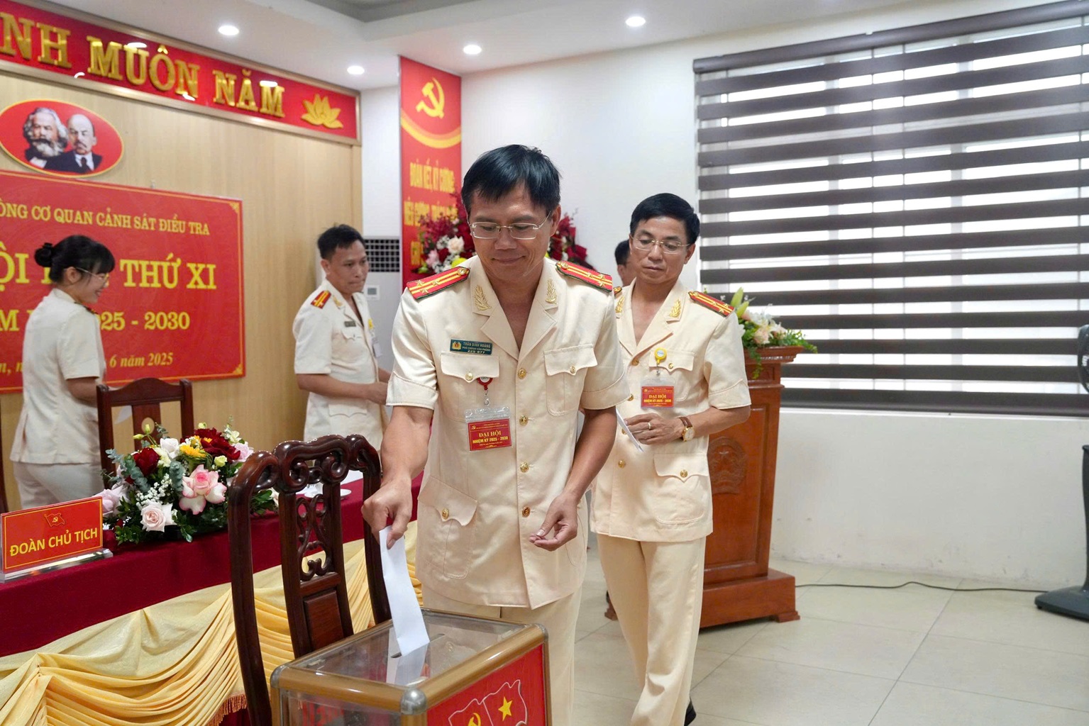 | Các đại biểu bỏ phiếu bầu Ban Chấp hành Đảng bộ Văn phòng Cơ quan CSĐT Công an tỉnh nhiệm kỳ 2025 - 2030 |