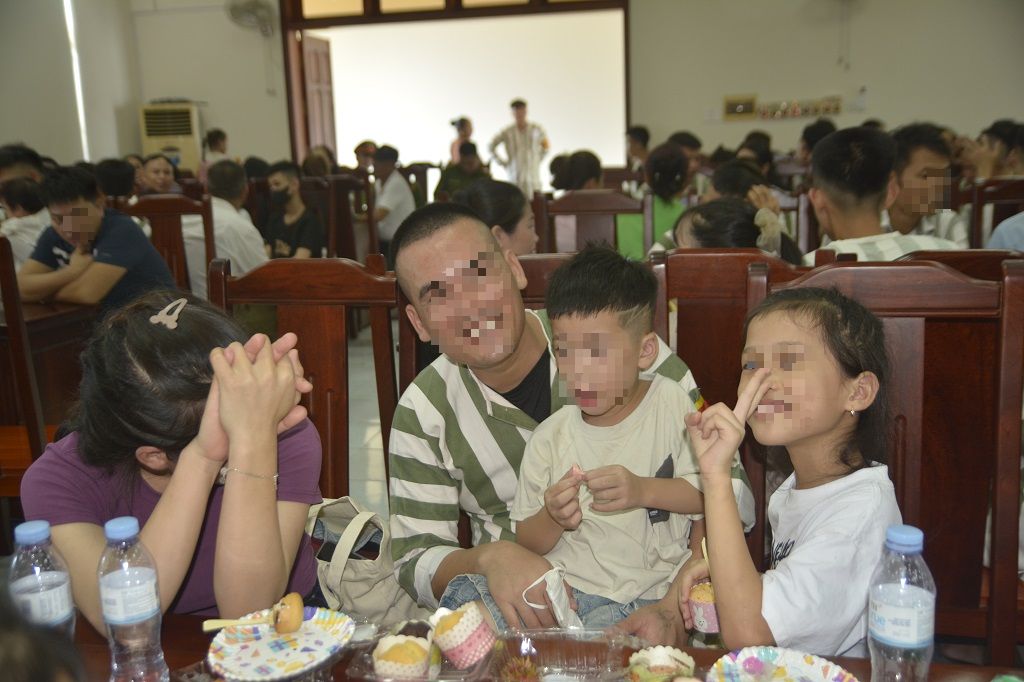 | Các phạm nhân và người thân quây quần bên bữa tiệc ngọt ấm cúng |