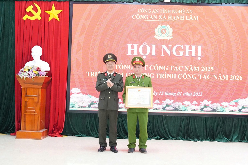 (Congannghean.vn)- Đó là phát biểu chỉ đạo của đồng chí Đại tá Trần Ngọc Tuấn, Ủy viên Ban Thường vụ Đảng ủy, Phó Giám đốc Công an tỉnh và đồng chí Nguyễn Thái An, Bí thư Đảng ủy, Chủ tịch HĐND xã tại Hội nghị triển khai chương trình công tác công an năm 2026 của Công an xã Hạnh Lâm.