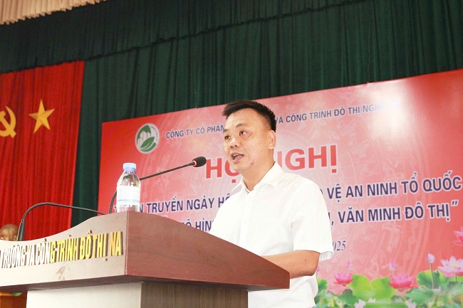 (Congan.nghean.gov.vn)-Chiều 23/7, Công ty Cổ phần môi trường và công trình đô thị Nghệ An tổ chức Hội nghị tuyên truyền Ngày hội Toàn dân bảo vệ an ninh Tổ quốc (ANTQ) và ra mắt mô hình "đảm bảo an ninh, văn minh đô thị". Tham dự Hội nghị có đại diện lãnh đạo và cán bộ theo dõi của các phòng: Phòng An ninh kinh tế, Phòng Tham mưu; đồng chí Nguyễn Chí Thông, Chủ tịch Hội đồng quản trị Công ty; các đồng chí lãnh đạo cùng cán bộ công nhân viên, người lao động của Công ty.