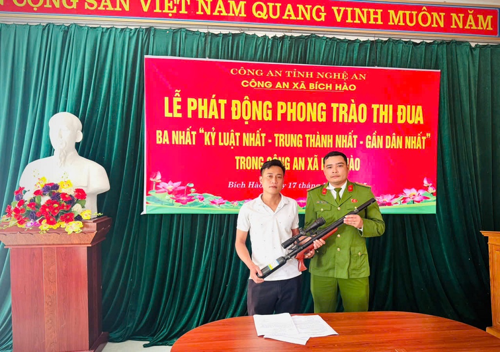 (Congan.nghean.gov.vn)-Đẩy mạnh phong trào toàn dân bảo vệ ANTQ, công tác dân vận của lực lượng Công an, Công an xã Bích Hào triển khai hiệu quả mô hình “Dân vận khéo trong tuyên truyền, vận động thu hồi vũ khí, vật liệu nổ, công cụ hỗ trợ và pháo. Qua đó góp phần nâng cao ý thức chấp hành pháp luật của người dân, bảo đảm ANTT.