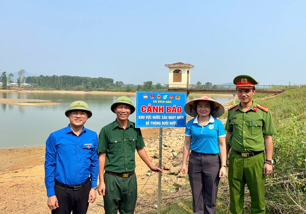 | Chi đoàn Công an xã Bích Hào phối hợp ban, ngành, đoàn thể tổ chức cắm biển cảnh báo phòng, chống đuối nước tại những khu vực nguy hiểm |