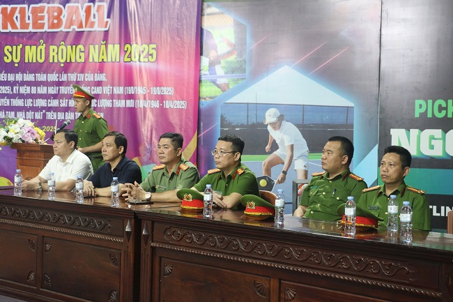 | Dự lễ khai mạc giải có các đồng chí: Đại tá Trần Ngọc Tuấn, Phó Giám đốc Công an tỉnh; Phạm Ngọc Cảnh, Phó Trưởng Ban Tuyên giáo và Dân vận Tỉnh ủy; Phạm Hồng Trang, Phó Chánh án Tòa án nhân dân tỉnh và đại diện Lãnh đạo Phòng Tham mưu, Cảnh sát Hình sự |