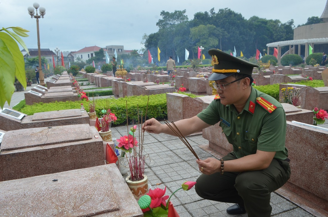 (Congan.nghean.gov.vn)-Hướng tới kỷ niệm 78 năm Ngày thương binh, liệt sỹ (27/7/1947 - 27/7/2025). Ngày 25/7/2018, Phòng Công tác chính trị Công an tỉnh Nghệ An đã dâng hương, tri ân các Anh hùng liệt sỹ tại Nghĩa trang liệt sĩ thành phố Vinh, tỉnh Nghệ An. Đồng chí Thượng tá Lê Viết Cận, Phó trưởng phòng Công tác chính trị Công an tỉnh Nghệ An làm trưởng đoàn.