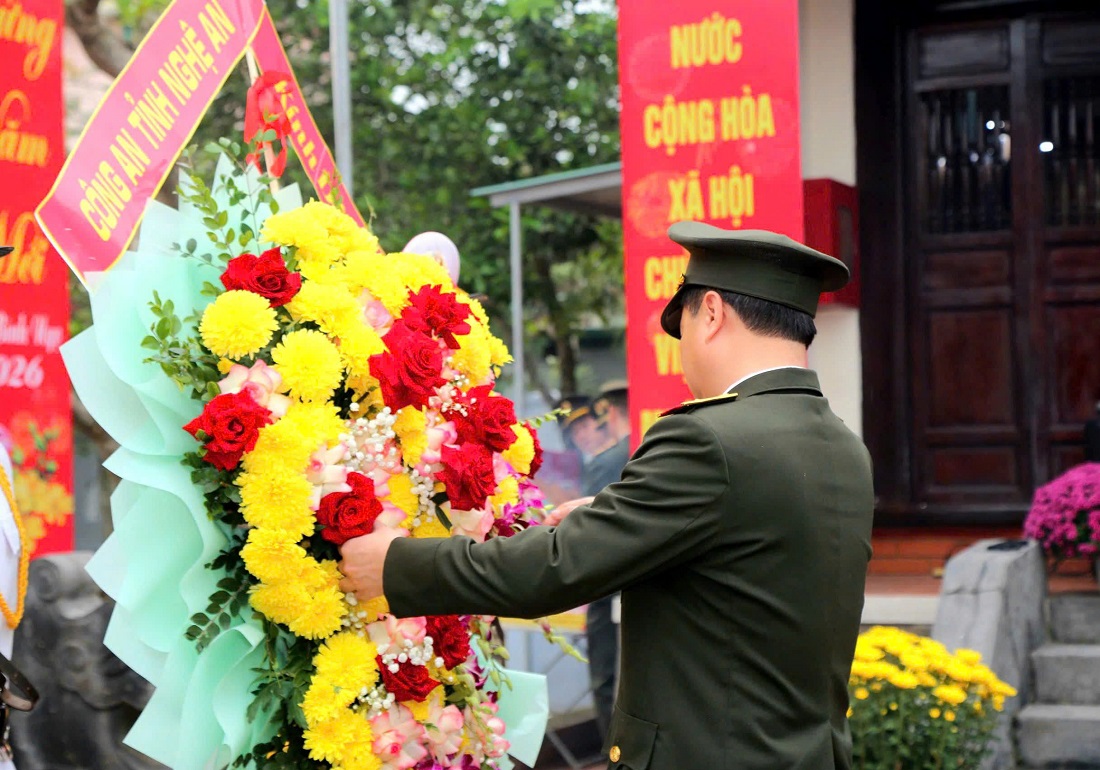 (Congannghean.vn)-Sáng 24/02/2026, Công an tỉnh Nghệ An tổ chức Lễ phát động "Tết trồng cây – Đời đời nhớ ơn Bác Hồ" Xuân Bính Ngọ 2026 và tổ chức trồng cây tại Nhà tưởng niệm đồng chí Trần Quốc Hoàn - nguyên Ủy viên Bộ Chính trị, nguyên Bộ trưởng Bộ Công an, Lãnh đạo tiền bối tiêu biểu của Đảng và cách mạng Việt Nam (thuộc xã Thiên Nhẫn). Đồng chí Thiếu tướng Đinh Việt Dũng, Ủy viên Ban Thường vụ Tỉnh ủy, Bí thư Đảng ủy, Giám đốc Công an tỉnh chủ trì buổi Lễ.