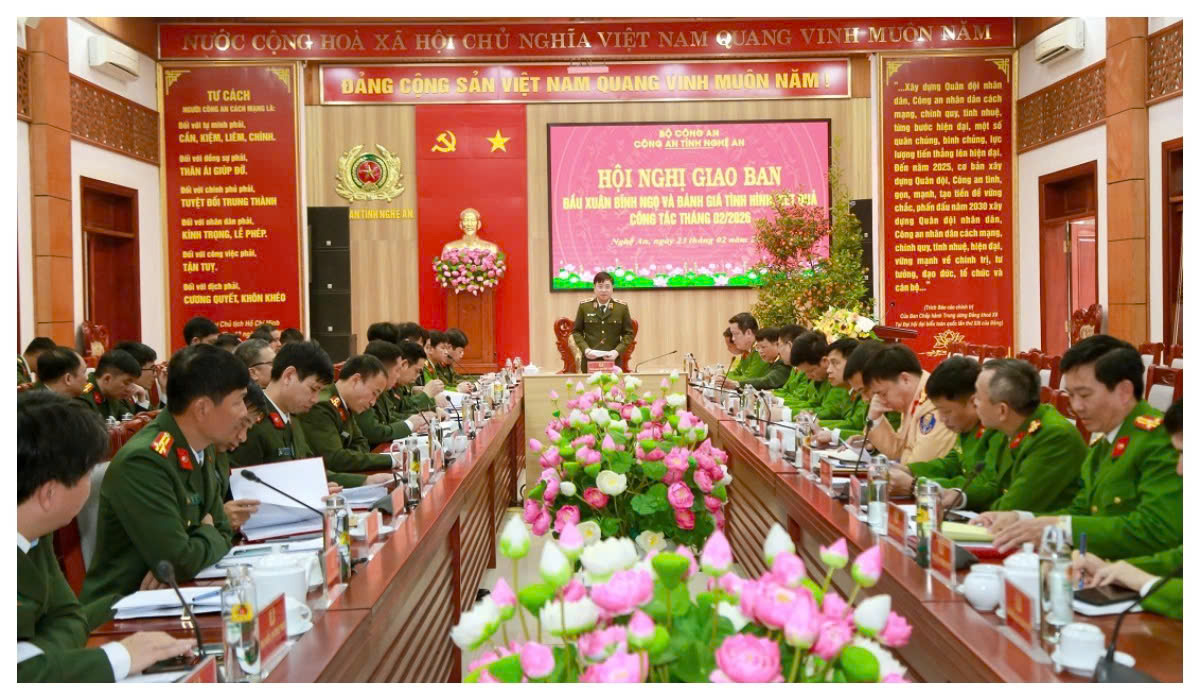(Congan.nghean.gov.vn)-Sáng 23/02/2026, Công an tỉnh tổ chức Hội nghị giao ban trực tuyến đánh giá tình hình, kết quả công tác bảo đảm an ninh, trật tự (ANTT) dịp Tết Nguyên đán Bính Ngọ 2026.