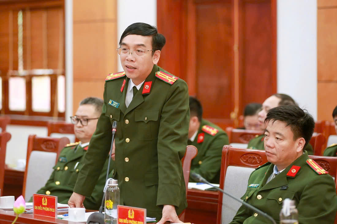 | Lãnh đạo các phòng Công an tỉnh phát biểu tại Hội nghị |