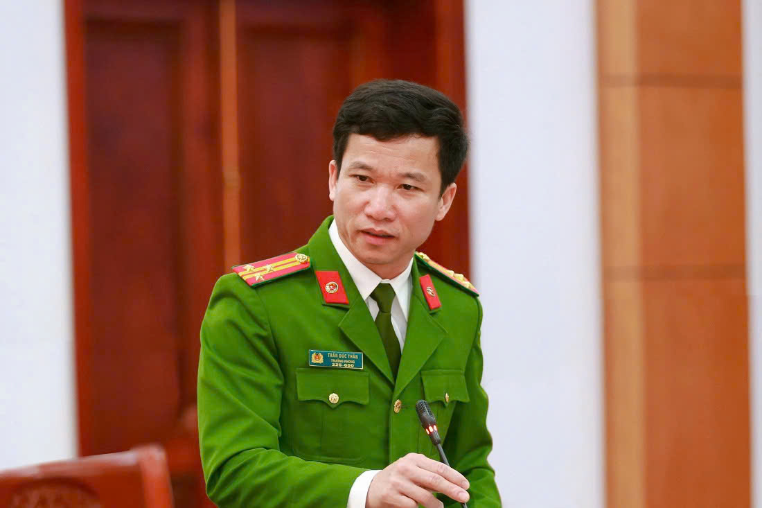 | Đồng chí Thiếu tướng Đinh Việt Dũng - Ủy viên Ban Thường vụ Tỉnh ủy, Bí thư Đảng ủy, Giám đốc Công an tỉnh chủ trì Hội nghị |
