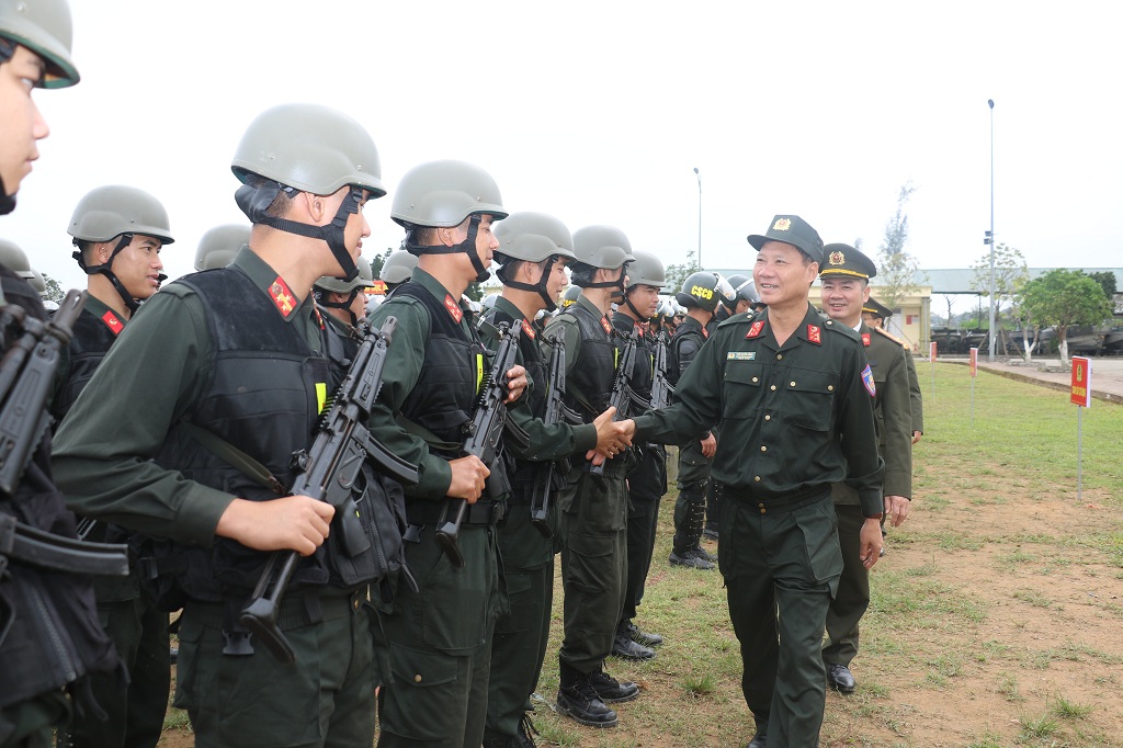 | Đại tá Thái Doãn Bằng, Trung đoàn trưởng Trung đoàn Cảnh sát cơ động Bắc Trung Bộ, Bộ Công an phát biểu tại khóa huấn luyện |