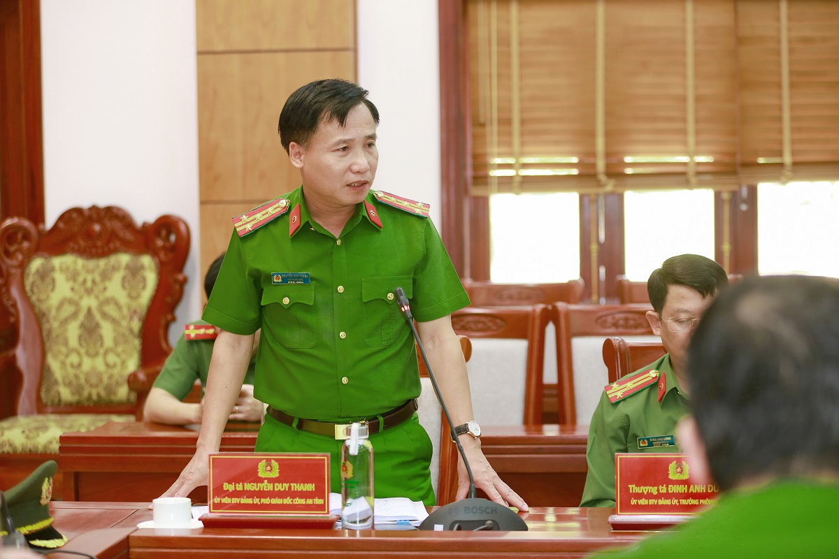 Phát biểu kết luận Hội nghị, đồng chí Thiếu tướng Đinh Việt Dũng, Ủy viên Ban Thường vụ Tỉnh ủy, Bí thư Đảng ủy, Giám đốc Công an tỉnh nhấn mạnh một số nhiệm vụ trọng tâm tháng 4 và quý II/2026. Cụ thể, Công an các đơn vị, địa phương bám sát chương trình, kế hoạch đề ra, tập trung triển khai đồng bộ, quyết liệt biện pháp, giải pháp “tăng tốc” thực hiện chỉ tiêu, nhiệm vụ được giao. Tiếp tục triển khai hiệu quả biện pháp, giải pháp bảo đảm an ninh chính trị; trên cơ sở quán triệt sâu sắc tư duy mới về an ninh quốc gia trong Văn kiện Đại hội Đảng toàn quốc lần thứ XIV để chủ động tham mưu đề xuất giải pháp mang tính chiến lược phù hợp với thực tiễn địa bàn trong bối cảnh, tình hình mới. Cùng với đó, tiếp tục làm tốt công tác phòng ngừa, đấu tranh, trấn áp mạnh mẽ tội phạm và vi phạm pháp luật; triển khai đồng bộ công tác quản lý Nhà nước về an ninh trật tự gắn với cải cách hành chính; thực hiện tốt công tác xây dựng Đảng, xây dựng lực lượng, hậu cần, tài chính…