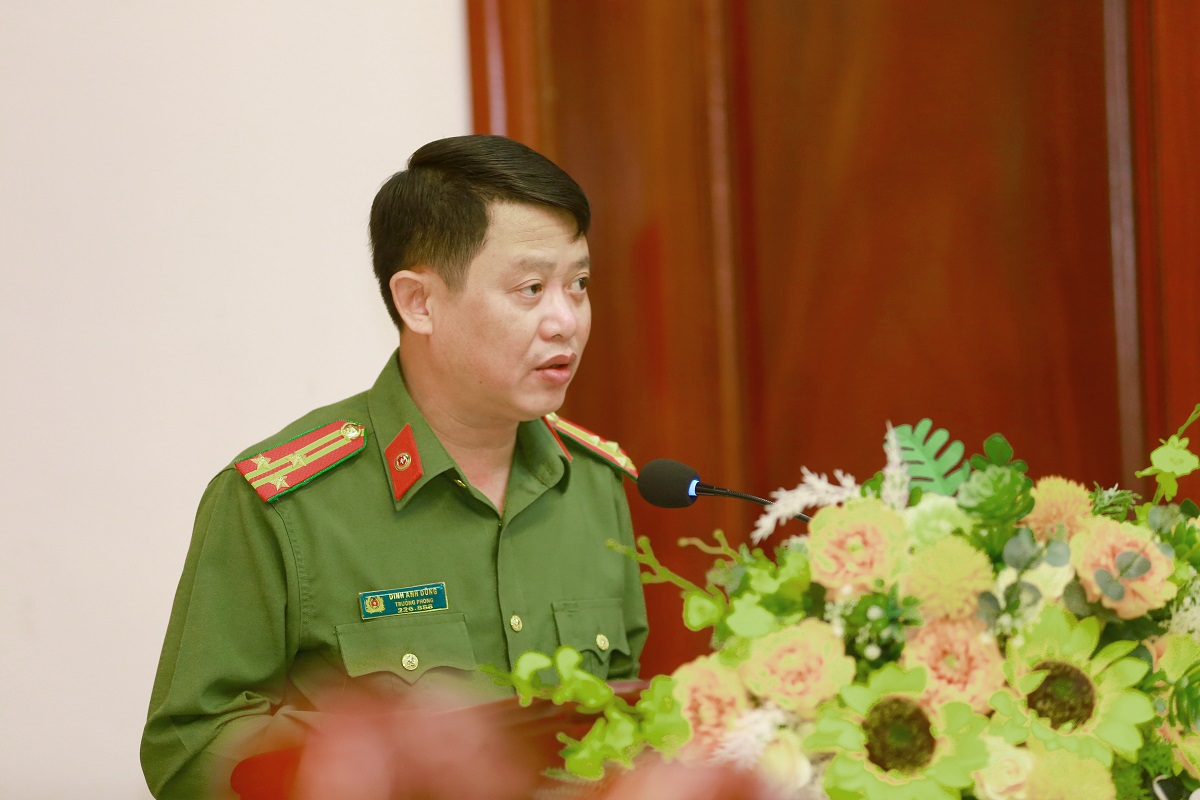| Thiếu tướng Đinh Việt Dũng, Bí thư Đảng ủy, Giám đốc Công an tỉnh phát biểu chỉ đạo tại Hội nghị |