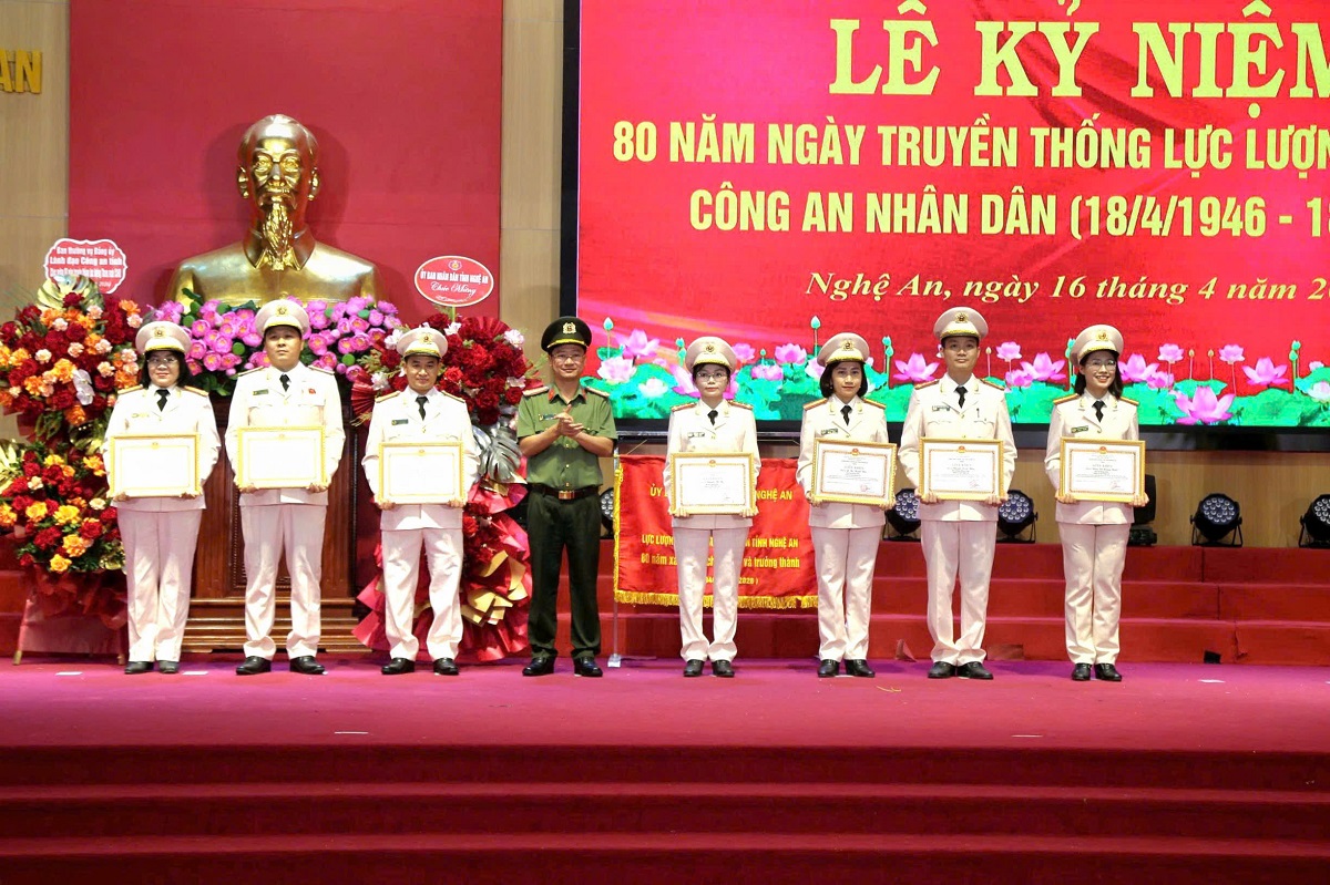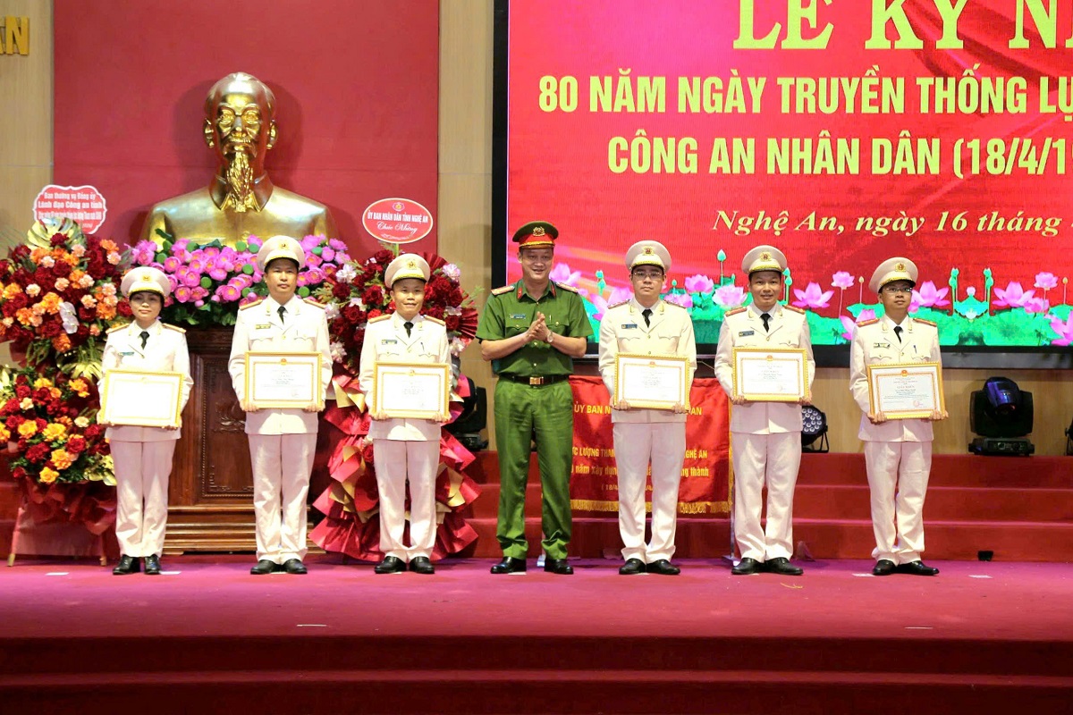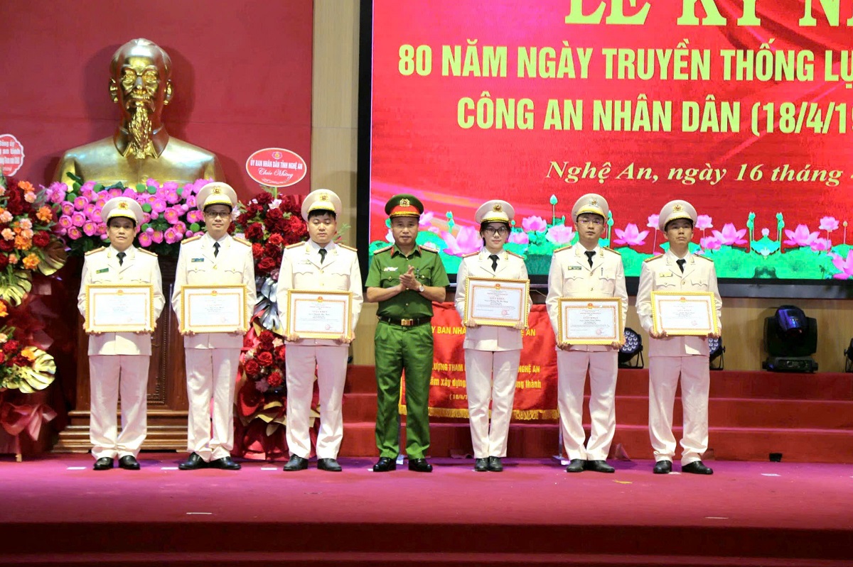 Tại buổi lễ, nhiều tập thể, cá nhân lực lượng Tham mưu Công an Nghệ An được Bộ Công an, UBND tỉnh tặng Bằng khen, Giám đốc Công an tỉnh tặng Giấy khen về thành tích xuất sắc trong công tác và phong trào thi đua kỷ niệm 80 năm Ngày truyền thống lực lượng Tham mưu Công an nhân dân.
