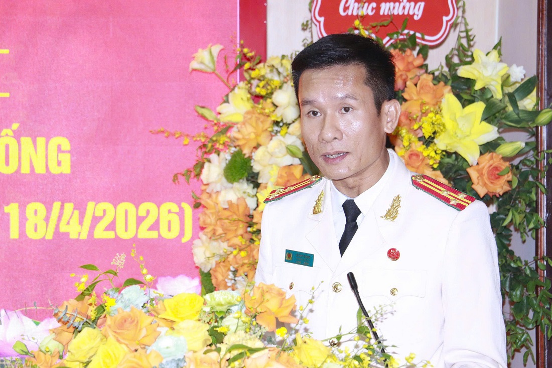 | Đồng chí Đại tá Trần Ngọc Tuấn, Phó Giám đốc Công an tỉnh phát biểu |