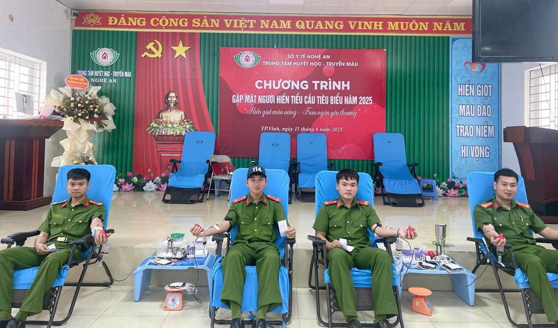 20:57 | 25/11/2025Cán bộ Công an phường Vinh Phú liên tục hiến máu cứu ngườiKhi nhận được thông tin bệnh nhân Nguyễn Đỗ Mười (sinh năm 1958) điều trị tại Bệnh viện Ung bướu cần truyền máu gấp, Thượng úy Bùi Văn Huy, Thượng úy Trần Quang Dũng và Đại úy Võ Quốc Việt, cán bộ Công an phường đã nhanh chóng có mặt. -