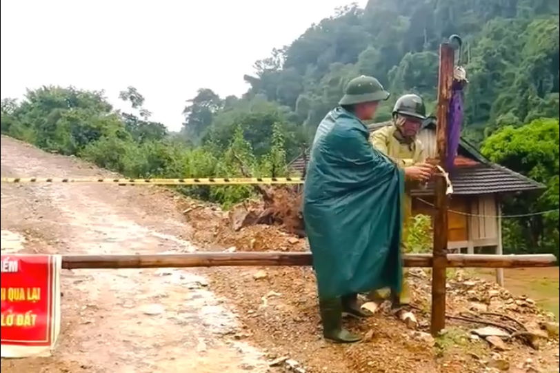 Công an xã cắm biển cảnh báo, di dời các hộ dân trước nguy cơ sạt lở