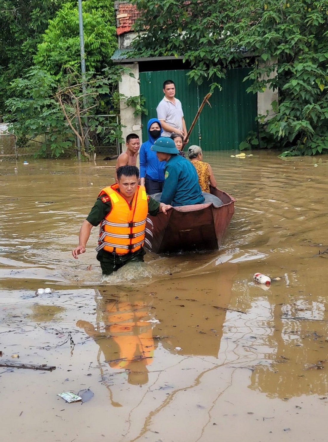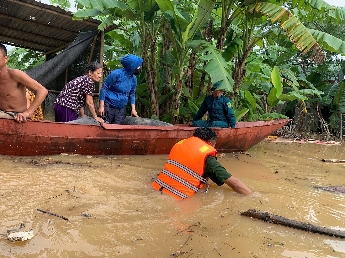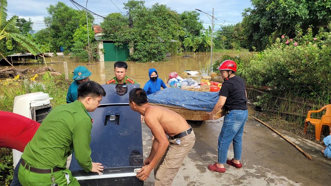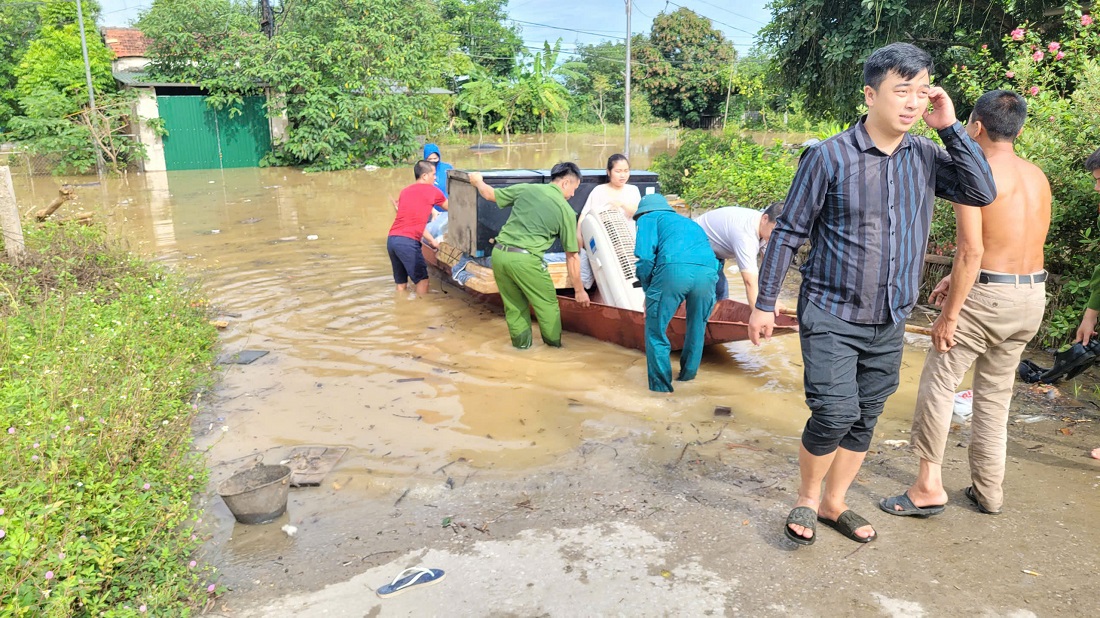 | Công an xã Đô Lương phối hợp với các lực lượng di chuyển người và tài sản đến nơi an toàn |