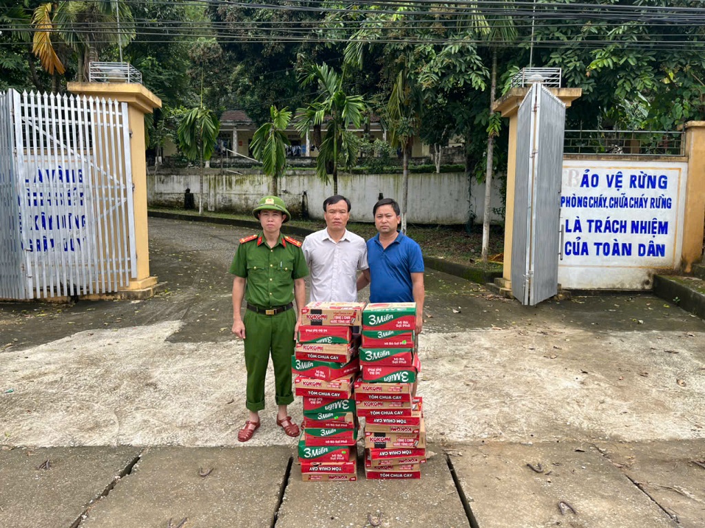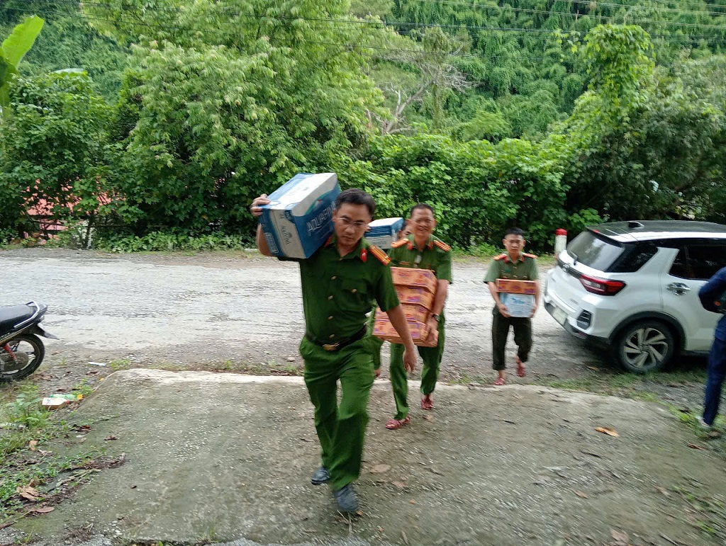 | Công an xã Yên Na tiếp ứng nhu yếu phẩm cho bà con nhân dân vùng bị cô lập |