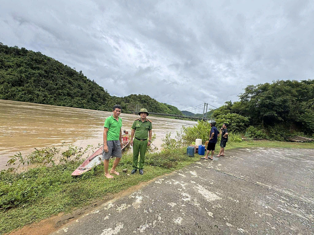 | Công an xã Yên Hòa tuyên truyền người dân không ra sông vớt củi khi nước lũ dâng cao |